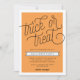 Convide convidados para a sua mancha manchete com nossos convites para festas de Dia das Bruxas, cor de laranja e preto, com uma grossa borda branca, fundo laranja festivo e elementos negros da tipografia moderna. Cartões invertidos para faixas pretas e brancas horizontais.