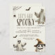 Hospede a última celebração do Dia das Bruxas com este convite para a festa do Dia das Bruxas "Vamos Ficar Loucos"! Perfeito para crianças, famílias ou festas de fantasias adultos, este design bonitinho e ligeiramente assustador apresenta fantasmas felizes, morcegos, teias de aranha e um espantalho branco de abóbora vestindo um chapéu de bruxa. Ideal para convidar hóspedes para o seu concurso de fantasia ou reunião de truques. Personalize facilmente os detalhes do evento, incluindo informações sobre data, hora, local e RSVP.