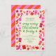 Este convite da Festa de Natal apresenta uma fronteira ilustrada com Enfeites de natal, presentes, canetas doces, estrelas e canecas com espaço para os detalhes da sua festa escritos em verde. A parte de trás do convite é cor-de-rosa e vermelha com um espaço maior para mais detalhes sobre o seu evento. Isso seria perfeito para uma festa de Natal da família, uma festa de Natal de trabalho ou qualquer reunião de férias.