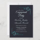 Um elegante convite à festa de noivado azul-da-meia-noite com folhas florais de ornamentado de turquesa embelezado para enquadrar os detalhes do convite.