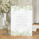 A Elegante festa de noivado botânica a aquarela enquadra seus detalhes de celebração de noivados com uma borda de folhas de aquarela pastel e folhagem em tons legal e claros de verde.