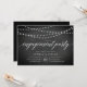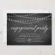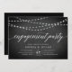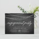 Nossos convites de festa de noivado elegantes e rústicos em preto e branco apresentam um fundo de quadro com cordas de luzes brancas no topo, e "festa de noivado" na tipografia de script de caligrafia. Personalize com seus detalhes de celebração de noivado em branco.