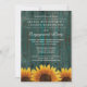 Country Turquoise Rustic Sunflower Festas de noivado Invtions - apresenta um fundo de madeira de turquesa russa, aflorado, com flores de girassol do país no fundo.