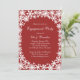 Flocos de neve brancos brilhantes em um fundo vermelho de amora decoram este convite para a Festa de noivado de inverno. Se forem necessários itens adicionais nesta coleção, entre em contato conosco em prettyfancyinvites@gmail.com com sua solicitação.