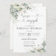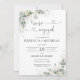 Convite para Festas de noivado Floral Dourada Eucalyptus. Este convite para na moda e festa de noivado elegante apresenta uma linda aquarela pintada manualmente Eucalyptus Dourado Floral Greenery. Localize itens correspondentes na Coleção de Verduras Florais Douradas Eucalyptus com Aquarela.