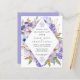 Lindas flores roxas e azuis empoeiradas criam uma estrutura de diamante para cercar seus detalhes de festa de noivado. Flores de ouro abertas e folhas dão ao design uma vibração luxuosa.