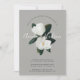 Nosso convite à festa de noivado de Grandiflora apresenta um par de flores brancas de magnólia com seus nomes sobrepostos em letras brancas. Personalize com seus detalhes de celebração de noivados em uma mistura de blocos e tipografia itálica em fora de preto em um fundo de cinza.