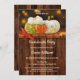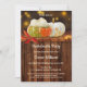 Bachelorette ou convite de festas de galinha com abóboras festivas com folhas coloridas de outono na madeira rústica com espumantes no fundo.