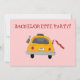 Os dois passageiros silenciados na parte de trás do táxi amarelo brilhante neste convite de festa de solteira saíram por diversão. Um pequeno braço segurando uma grande garrafa de champanhe estende-se do lado esquerdo. Da janela do lado oposto, um lenço longo, vermelho, pontilhado por polca também está sendo agarrado por uma mão pequena e está batendo na brisa. Nada vai impedir estas senhoras de se divertirem! O texto personalizável na pequena placa de licença pode ser facilmente alterado para dizer o que você quiser e todos os detalhes da parte podem ser alterados para atender às suas próprias necessidades. Da minha imagem original de mídia mista criada digitalmente.