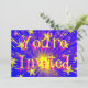 Um fogo de artifício explodindo em um chá de ouro e estrelas cor-de-rosa deslumbrantes contra um céu azul. Convite com um design personalizável amarelo, cor-de-rosa, azul e branco para que você personalize com seu próprio texto, fotos e ideias. O texto pode ser facilmente alterado usando o modelo fornecido ou clique no botão 'Personalizar o texto' para fazer outras alterações. Criado com fotografias originais e técnicas digitais por Jess Perry.