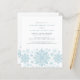 Flocos de neve de cor azul muito elegantes criam uma bonito borda ao longo do final deste convite de aniversário para adultos. A design moderna e minimalista tem uma sensação aberta e arejada. A estética contemporânea apelará a pessoas de todas as idades.