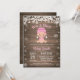 Convite à Chá de fraldas de Neve para Rapariga de inverno. Floco de neve branco e rosa. Convite para Chás de fraldas. Convite para Chá de fraldas de férias de inverno. Fundo Rustic Wood. Campo de Vintage Retro Barn. Para mais personalização, clique no botão "Personalizar" e use nossa ferramenta de design para modificar este modelo.