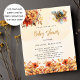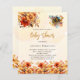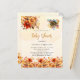 Um fundo branco na moda e ouro de cor d'água. Decorado com uma abelha e flores amarelas e laranja. Com o texto: Chá de fraldas escrito com um moderno estilo escrito à mão. Personalize e adicione o nome da mãe a ser. Ouro e letras pretas