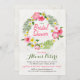 Este convite floral tropical apresenta uma coroa floral com lindas flores de hibisco de aquarela e folhas de palma. Um belo convite para uma Aloha, Havaí, ou uma festa ou evento temático da praia. Este exemplo de convite é usado para um chá de panela, mas pode ser personalizado para qualquer tipo de evento, como chás de casamento, festas de noivado, festas de aniversário, casamentos, etc.