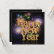 Fogos de artifício de véspera de ano novo Convite Texto dourado 3D com fogos de artifício digitais sobre fundo preto. Personalizável.
