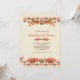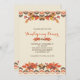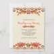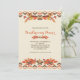Um belo convite de outono com folhas de outono, bagas e bolotas contra um fundo de natas com um padrão geométrico de fronteira. Apresentado como um convite de Ação de Graças, é adequado para qualquer celebração do outono.