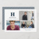 Convite de festas de fotos múltiplas inicial. Altere o texto e a cor de fundo. Parte de uma coleção. Design simples e simples, azul