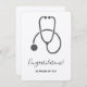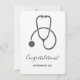 Um cartão de saudação de parabéns. Projetado com uma simples estetoscópio de cinza colocado sobre fundo preto. Design minimalista elegante. Mensagem personalizada no verso.