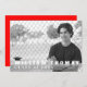 Montagem de fotos do solteiro. Convite para Graduação de Tema Vermelho e Negro com boné de formatura. Até 6 esquemas de fotos. Códigos de cor: #FF0000 para vermelho básico