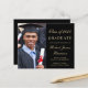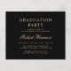 O anúncio e convite de festas do formandos negro moderno e amigável em termos de orçamento, com uma foto do formando, seu nome e ano de aula em um elegante roteiro de ouro leve e sua universidade, major e honra. Na parte traseira, adicione os detalhes da parte do formando.