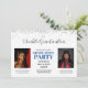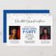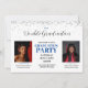 Este é um convite de festa de formatura azul e branca com cores editáveis. A foto pode ser alterada. As cores também podem ser mudadas para outras escolas.