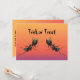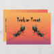 Este convite para festas de Halloween apresenta um design branco de duas formigas maiores que as da vida dançando sobre uma superfície colorida de laranja, ouro e roxo. Todo o texto pode ser personalizado para seu evento especial.