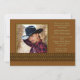 Um design quente, com um toque ocidental, perfeito para o homem que comemora um aniversário especial. O fundo castanho de chocolate tem uma trilha trançada e a janela fotográfica é enquadrada em verde-oliva.