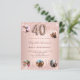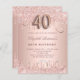 Um convite moderno, na moda e glamouroso para um aniversário de 40 anos. Um fundo rosa de gradiente dourado com um elegante rosa dourado, brilho suave, aparência de pingar. O nome é escrito com um moderno e escuro, rosa dourado, escrito com letra de estilo manuscrito. Personalize e adicione seus detalhes e fotos da festa. O número 40 é escrito com uma fonte de estilo de balão, script.