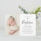 simples design preto e branco com uma foto personalizada, batismo e convite batizante. O texto e as cores podem ser editados.