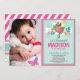Vamos Flamingle! Celebre suas filhas Tropicais Flamingo Aniversário com este Adorável Convite à Noite de Flamingo Rosa. Este convite de festas flamingo apresenta um flamingo rosa moderno numa cor rosa moderna. Personalize estes convites de aniversário com a fotografia do seu filho. Perfeito para flamingo Primeira Festa de aniversário, Festa de Piscina de verão, deixa festa de aniversário inflamável.