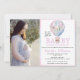 Um convite para fotos de chá de fraldas de um balão de ar quente com aquarela. Pode editar imediatamente, não precisa esperar.