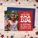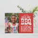 Legal convite de festas de churrasco de 4 de julho. Design apresenta uma tipografia vintage angustiada. Adicione sua foto e detalhes da festa com espaço no vazio para fotos ou texto adicionais no verso. Use as ferramentas de design para escolher qualquer cor de fundo, adicionar mais fotos e texto, editar fontes e cores para criar uma única de um tipo de convite de festas.