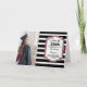 Convite para formatura de formando preto e marrom Graduação de fotos em striped de script de formando. Adicione sua foto favorita com uma elegante caligrafia de script e design clássico.