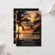 Apenas uma recepção de casamento romântica, postar ou depois de um convite de casamento com um pôr do sol numa praia tropical com palmeiras. O verso mostra a sua foto favorita (casamento) com um design listrado de ouro rosa.
