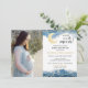 Aquarela celeste de meia noite azul lua de ouro e estrelas convite para fotos de chá de bebê menino.