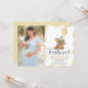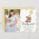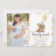 Urso azul de ouro aquoso com convite fotográfico de balão para chá de bebê. cartão com fotos do chá de fraldas.