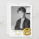 Celebre o marco do seu filho no estilo do ouro com este convite para fotos de aniversário de 8 anos do balão de ouro! Apresentando a palavra "OITO" em letras de balão de folha de ouro e espaço em negrito para a foto do seu filho, esta design moderna é elegante e divertida. Personalize todo o texto para corresponder aos detalhes da sua parte, do nome da criança ao momento e local. Quer você esteja planejando uma festa divertida ou uma comemoração de chic, este convite é uma forma bonita e personalizada de juntar suas pessoas favoritas.