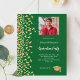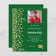 Um convite moderno e elegante para a Festa de formatura. Um fundo verde da floresta decorado com confete de ouro falso. Personalize e adicione fotos, um nome e detalhes da festa. Texto branco. 1 folha = 1 convite impresso de borda a borda.