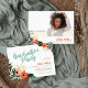 Anúncio de fotografia de graduação feminina moderna e design de convite de festas com uma corajosa borda floral tropical e letra de script de caligrafia na moda. Personalize o design com sua foto, seu nome e detalhes da festa de formando. Use as ferramentas de design para adicionar mais fotos e personalizar todas as fontes e cores do texto para criar uma única de um tipo design.
