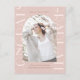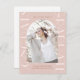 Este cartão postal de convite para festa de formatura fotográfica moderno apresenta um bonito fundo cor-de-rosa pincelado e uma grande tipografia com um arco fotográfico geométrico frontal, e detalhes de festa de formatura e endereço de retorno no verso.