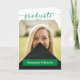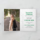O roteiro elegante anuncia seu formando sobre sua foto favorita do mais velho na frente. Bloquear o nome deles na frente, e todos os detalhes da cerimônia, dentro junto com outra foto. A parte traseira inclui espaço para retransmitir seus planos futuros ou incluir uma mensagem de obrigado. Design disponível nas cores da escola de vermelho, laranja, roxo, verde, azul, laranja queimada, marrom e preto. Produtos correspondentes disponíveis.
