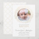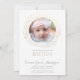 Este elegante batismo ou batizante convite fotográfico apresenta uma ilustração dourada da coroa floral com a palavra "abençoado" rodeando uma fotografia. Há um fundo branco com o texto "batismo" numa fonte moderna - também em ouro. A foto e o texto podem ser personalizados para a ocasião religiosa especial de seu filho ou filha.