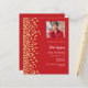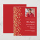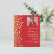 Um moderno, elegante e convite. Um fundo vermelho decorado com confete de ouro falso. Personalize e adicione fotos, um nome e detalhes da festa. Texto branco. 1 folha = 1 convite impresso de borda a borda.