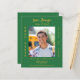Personalize e adicione uma foto, nome, nome da escola, classe e detalhes da festa. Uma cor verde de fundo da floresta, texto do ouro. 1 folha = 1 convite impresso de borda a borda.