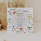 Convite de casamento com uma moldura de aquarela de flores silvestres e verde. Personalize com suas informações.