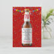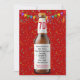 Garrafa de cerveja castanha com beliche de festa e confete colorido em fundo vermelho para festa de aniversário de 70. A idade de aniversário pode ser alterada. A cor de fundo pode ser alterada. O texto é editável ou pode ser excluído.