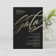Convite para gala elegante de preto e ouro com cartão de rsvp correspondente e bilhete perfeito para ocasiões profissionais e de negócios.
