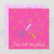 Borboletas e flores decoram este convite de aniversário para o aniversário de uma menina ou outro evento. O fundo cor-de-rosa não é personalizável, mas todo o texto pode ser alterado.