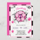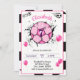 Um convite de aniversário de bola de futebol preto e rosa para uma garota. Pinta preta com rosa quente é excelente para celebrar o aniversário do tema futebol.
