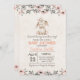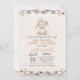Um belo coelho é apresentado neste convite com elementos florais. Sombras de cinzentos cor-de-rosa e neutros com fundo rosa-pinto-claro.